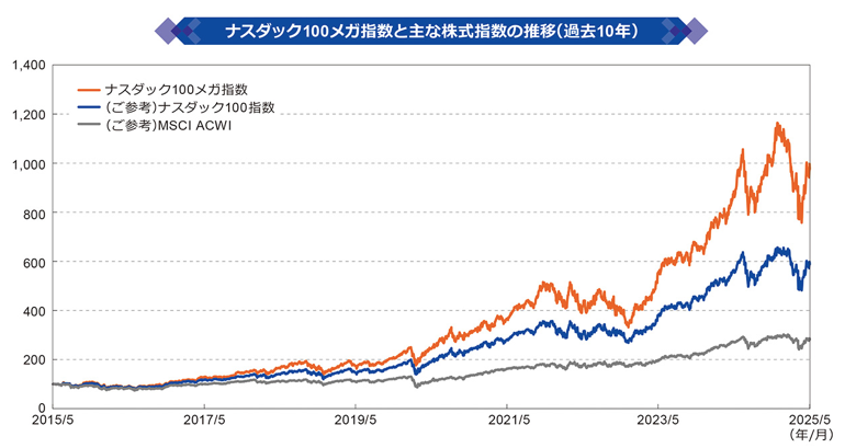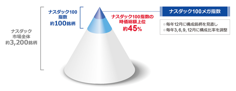 NASDAQ100の時価総額上位45%であるメガ指数に連動する投資信託で、